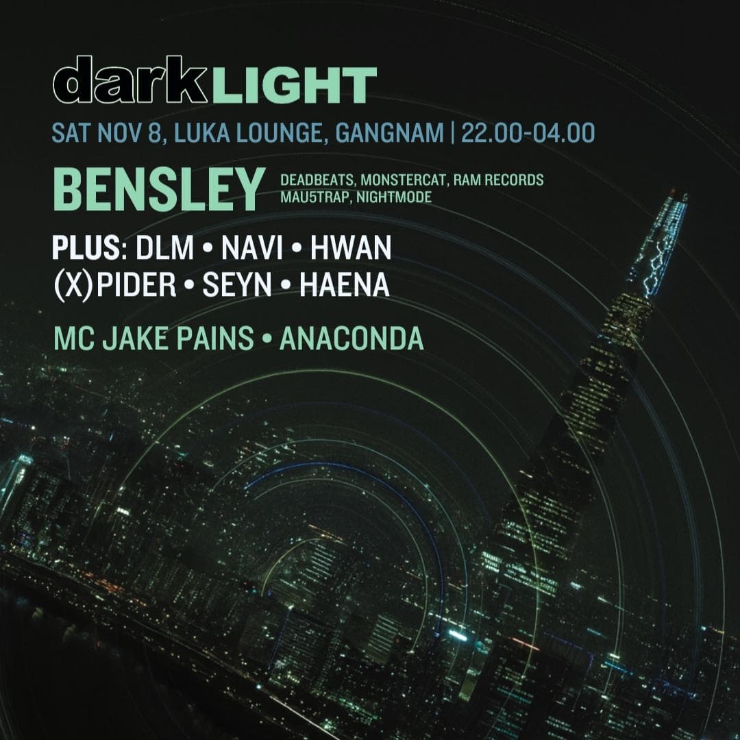 Supported by Darklight residents and Seoul’s best drum & bass selectors: DLM & JAKE PAINS, NAVI, (X)PIDER, HWAN, HAENA and SEYN.